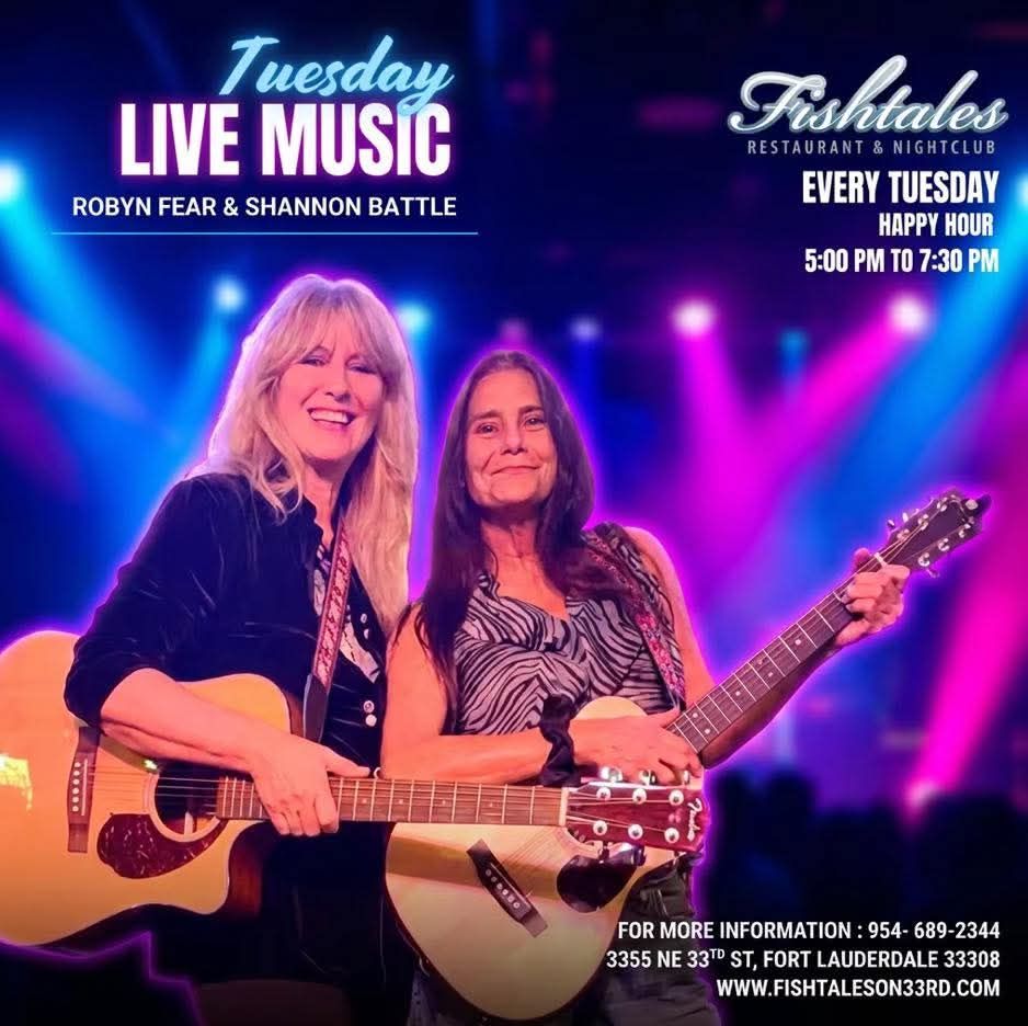 Pictured with soulful singer, songwriter Shannon Battle. Check her music out on all streaming apps and iTunes. We play duos together (including every Tuesday at Fishtales, Ft Lauderdale) regularly and she's so talented! See Shannon Battle & Robyn Fear Music on Facebook.